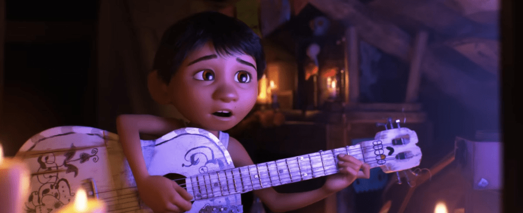 A young boy named Miguel is secretly rebelling against his family’s generational ban on music. Ages ago Miguel’s late great-great-grandmother Mamá Imelda banned music because her husband left to pursue a musical career and never returned. Miguel comes to believe his idol Ernesto de la Cruz who is the most famous musician in the history of Mexico is his great-great-grandfather based on an incomplete photograph.