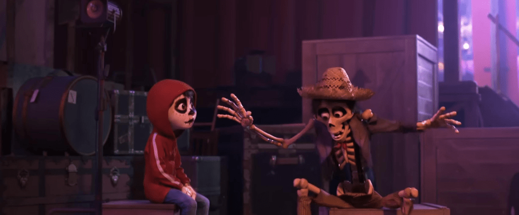 In a moment that looks like one of convenience while in the Land of the Dead Miguel meets up with Héctor who is desperate to get back to the one person who still remembers him but is beginning to forget due to age. A clue right there like so many others laid out in this movie until the reveal that Héctor is the ancestor and not Ernesto de la Cruz. Disney has often gotten dark and the reveal when all the pieces come together is rather dark. Ernesto in a bid to achieve fame killed his musician friend Héctor and passed his music off as his own.