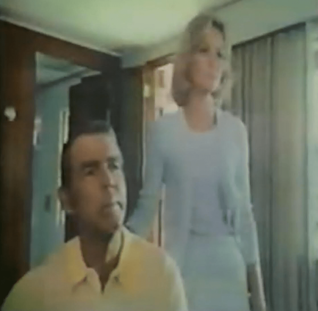 For starters the character of Jed Horn (Sam Groom) was the main character from the start and the focus of events was largely on him but by the end the focus was on businessman Harry Ballinger (Fred MacMurray) though all he did was go around to get exposition to expand upon the mystery. Horn and his tepid romance with Claudia (Donna Mills) were front and center for the first half or so with Ballinger being almost an afterthought and then they switched. The most consistent character in presentation is Wendy (Dana Plato) who just keeps going on about how her mommy who disappeared at the beginning of the movie isn’t dead.