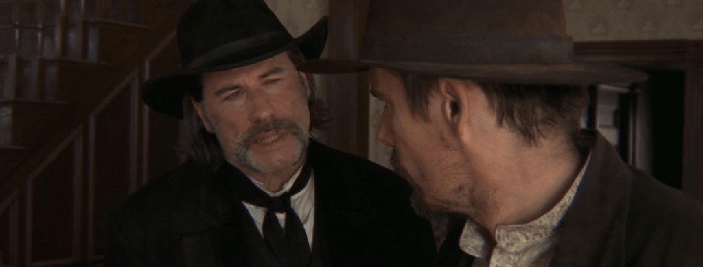 U.S. Marshal Clyde Martin (John Travolta) rules over Denton with an iron fist but I am mystified who exactly he is ruling over or what the character is getting out of the operation. No traffic to profit from. No population to extort. Not even a mention of a train coming through that will give him some financial windfall like multiple Westerns. A few extras were called for to imply some citizens.