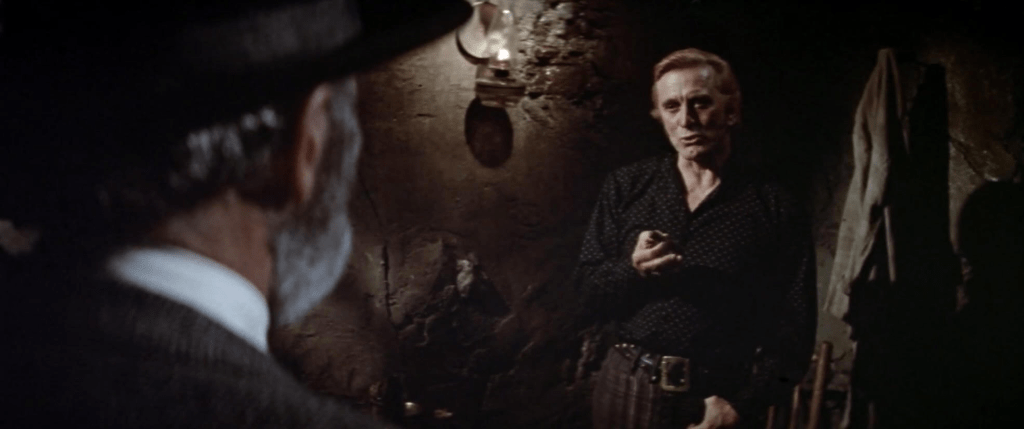 There Was a Crooked Man… is packed stem to stern with top-tier talent of the time. Kirk Douglas, Henry Fonda, Hume Cronyn, Warren Oates, Burgess Meredith, John Randolph, Lee Grant, Alan Hale Jr., and Victor French as Whiskey though I will be darned if he had a line of dialogue. Yet not one is given an excessive amount of time to justify their presence. It is only what is necessary for their character or the plot.
