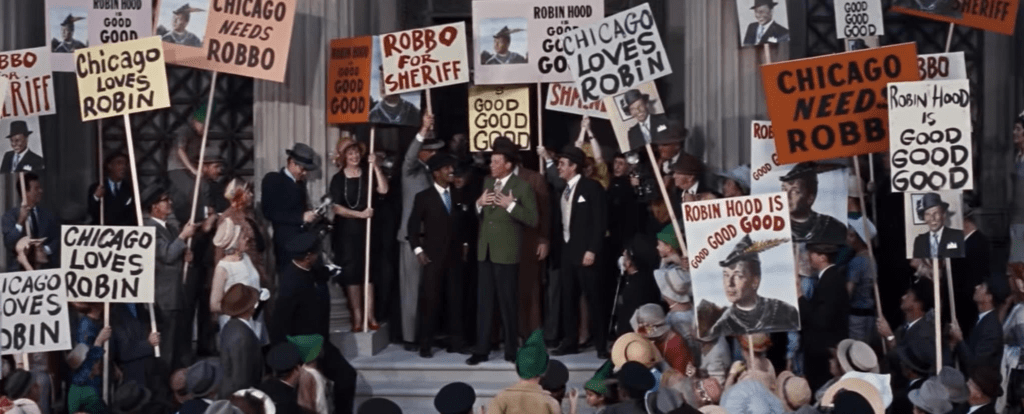 The songs are great. Don’t get me wrong. “My Kind of Town” became a bit of standard for Sinatra. Its great music performed by great singers but I would’ve liked this movie more if it had been without music. Just a straight up crime comedy with the occasional meta-reference to how similar it is to the Robin Hood story. They do that briefly, but not often enough.