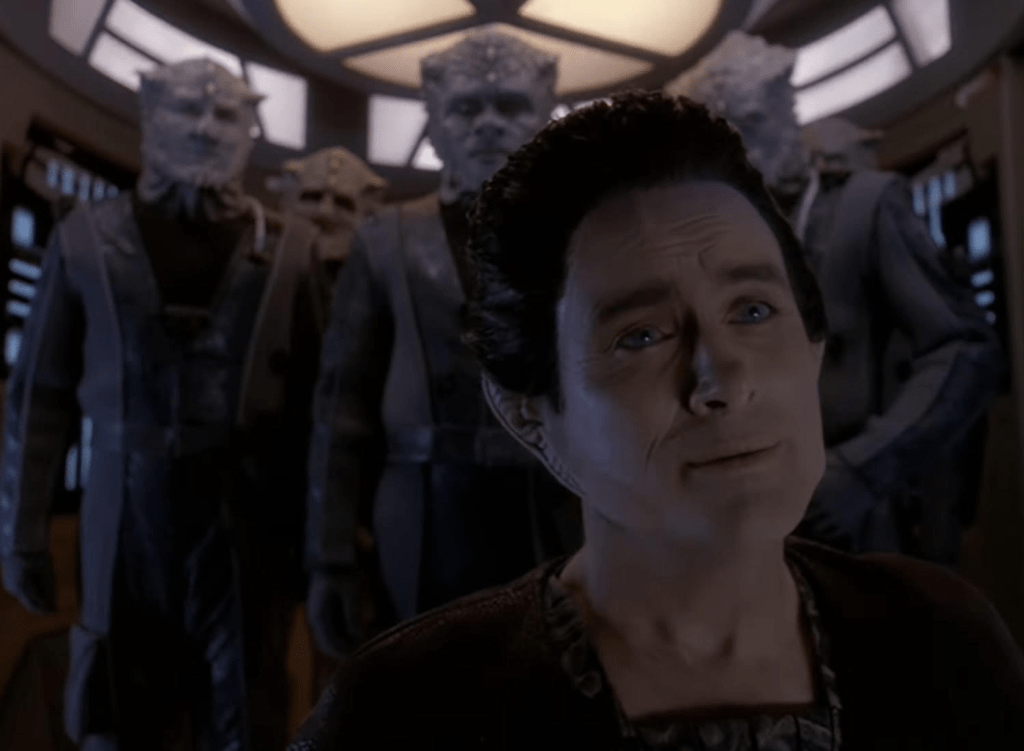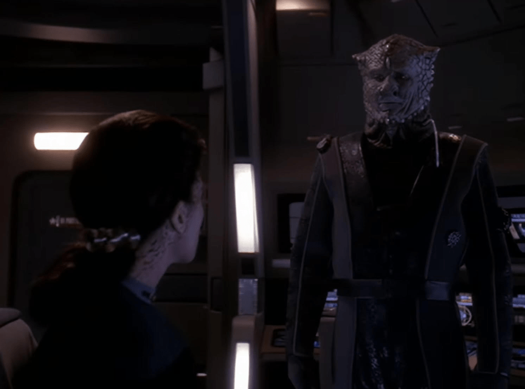 It certainly has action but also gives us a good look into the power dynamics of The Dominion in general and specifically Vorta and Jem’Hadar soldiers. Looking back, it is a bit of an episode that is an information dump but done as needed for the plot. All the knowledge we get though comes via dialogue and character interactions. It also delves into some lore established in the TNG Season 2 episode Contagion. Not sure if the Iconians have been mentioned since.