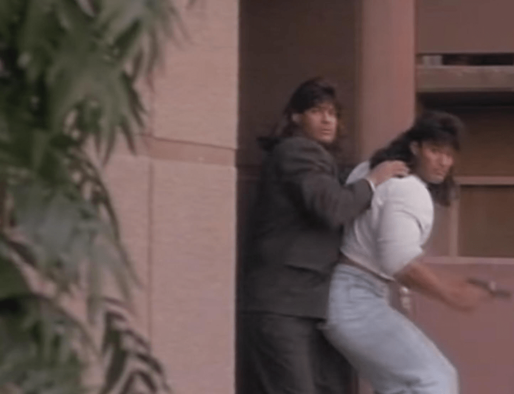 Starring B-movie icons the Barbarian Brothers Peter and David Paul as, and this is a stretch, burglar Peter and cop David Jade respectively. Both in the physiques here put Schwarzenegger in his prime to shame making Peter being a stealthy cat burglar a little questionable. Kudos to costuming for mostly dressing the duo in distinct outfits for the whole movie.