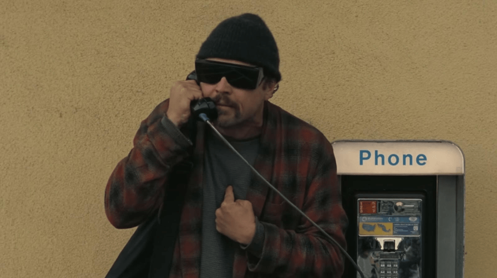 Some of the character names come off as, well, stupid. I have not read the 1990 novel Vineland by Thomas Pynchon upon which this is based so some or all could come from that but great googley moogley are they stupid. Colonel Steven J. Lockjaw (Sean Penn) and Perfidia Beverly Hills aside, we have characters with names like “Ghetto” Pat Calhoun/“Rocketman”/Bob Ferguson (Leonardo DiCaprio), “Mae West” (Alana Haim), “Junglepussy” (Shayna McHayle), and the white supremacist Christmas Adventurers Club.