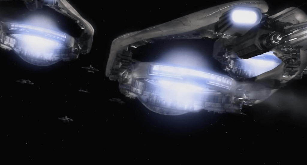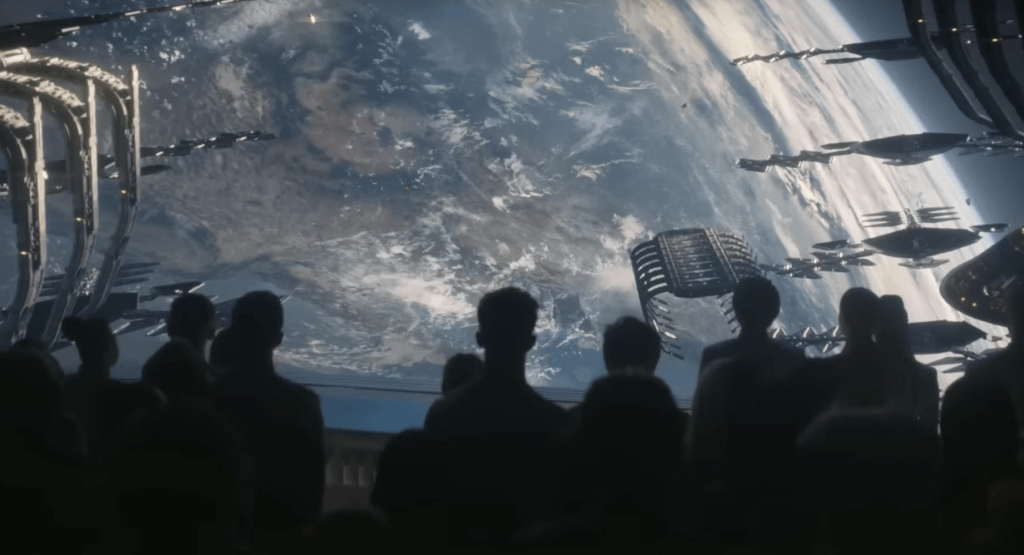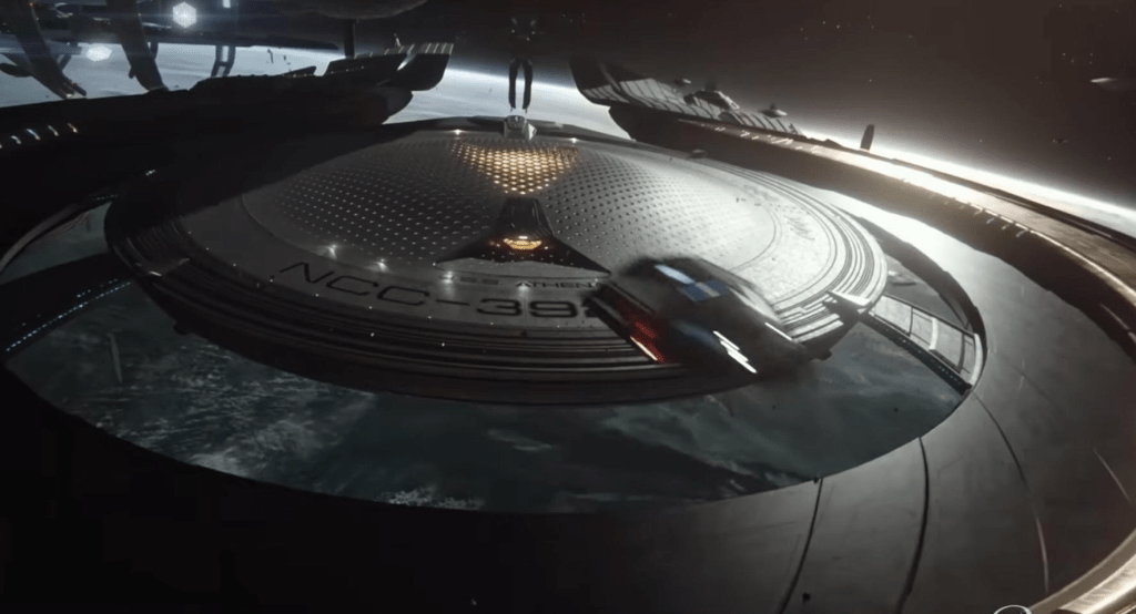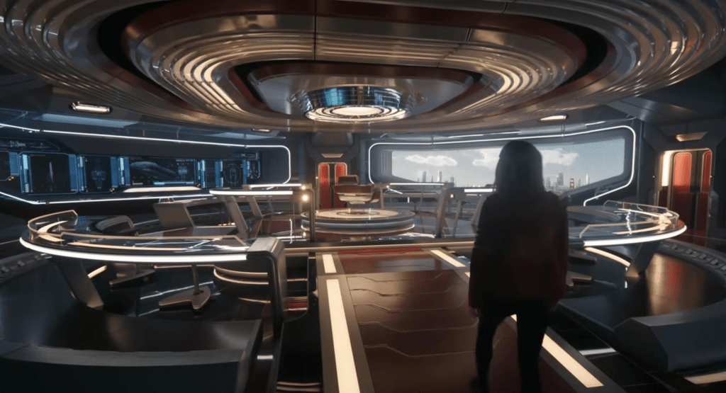 Intersecting with Caleb Mir’s (Sandro Rosta) story is the re-founding of Starfleet Academy because The Burn is finally behind them. Much of this episode takes place on the newly commissioned USS Athena meant to act as a training ship but is really a flying high school. The design itself is a cross between Discovery and the Ori vessels seen in the final two seasons of Stargate: SG1.