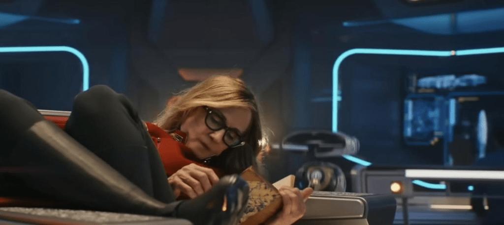 Different areas of Starfleet Academy are announced over the intercom. Many of those places appear to be named after characters that have appeared only on screen or been mentioned in a show. Boothby Memorial Park. Kirk Pavilion. Hoshi of Enterprise even gets a location named after her. It’s like there is no history beyond what’s been filmed. It makes things feel so small. With heavy mentions of humpback whales, which I’m guessing is a call back to Star Trek IV, this episode has nothing but reminders of other better Star Trek shows. It relies on nostalgia over using the basic Trek framework as a start to build its own world like DS9 did.