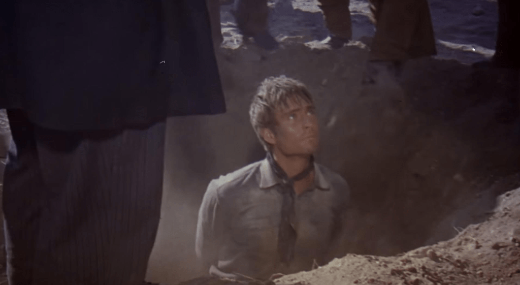 The stark and shocking opening tells us we are at the minimum getting an attempt at something a bit different. Eyes carry a great deal of expression in Death Rides a Horse making dialogue often unnecessary but adding more meaning. Van Cleef-as-Ryan manages a few amazing lines like “They came in the windows. It wasn’t to wish me pleasant dreams.”