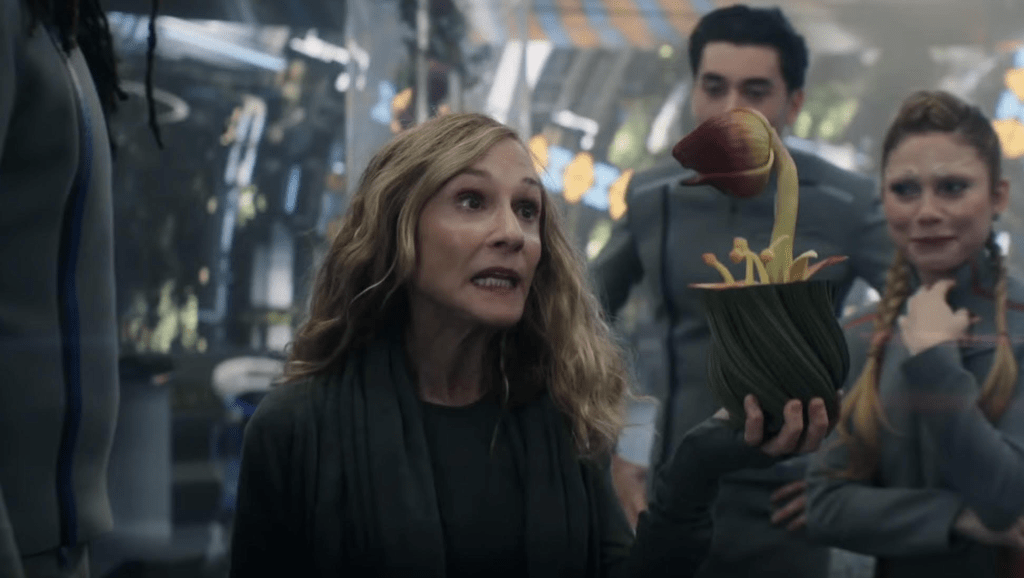 The spores of the aforementioned empathy flower are spread in all the right places at the War College and it grows at a cartoonish rate while its vines slam cadets into walls and windows. The potential injuries to people are ignored and the potential damage to property are never considered. Star Trek was once deeper than this.