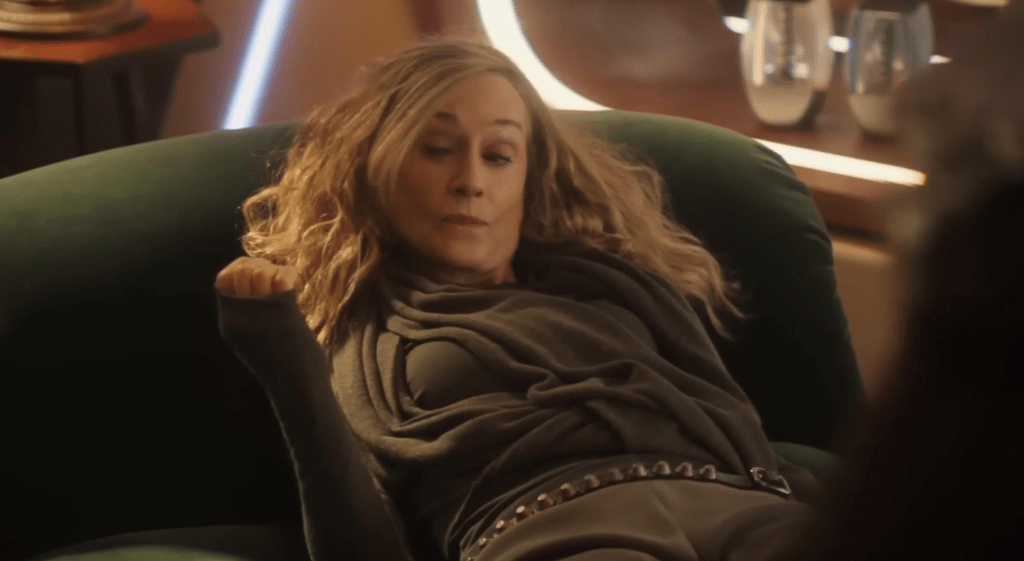 Ake continues her inability to sit still or naturally in a chair distracting from Holly Hunter’s performance while also making an authority figure not look like one. Even the incompetent authority figures of McHale’s Navy or Hogan’s Heroes did try to look serious even if the shows were not. I know Jonathan Frakes described this series as funny but her flopping undercuts every moment.
