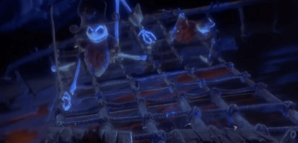 Given the success of The Nightmare Before Christmas and the connection of those involved in this with that classic it was a given that Jack Skellington would make an appearance. It occurs in an underwater moment because the characters are in need of a compass and he acts as a ghostly pirate rather than as a cheap gimmick. It is done in a way that if you did not know that TNBC existed you would not be confused.