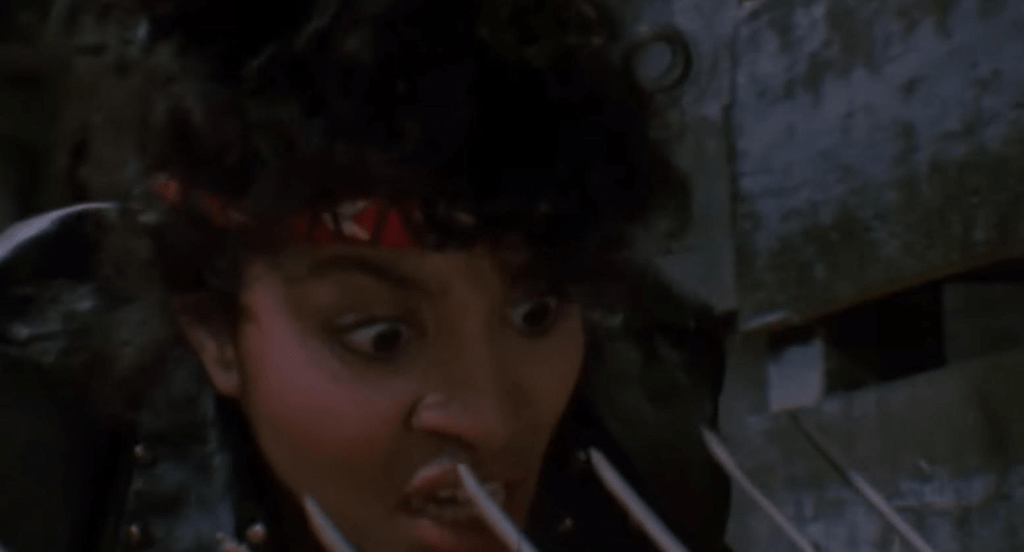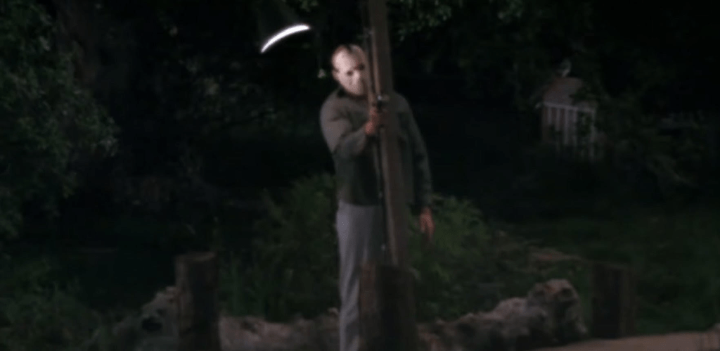 As a film this is perhaps best remembered as the movie where Jason finally got his iconic hockey mask rather than the generic burlap sack he previously sported. We also get a few shots from a distance of Jason without any mask at all. It’s a combination of mild prosthetics and the actor’s own unfortunate appearance. Friday the 13th Part III is also noteworthy for the character of Chris Higgins (Dana Kimmell) who is unable to enjoy intimacy because of childhood trauma derived from an attack by Jason rather than being the movie’s prude.