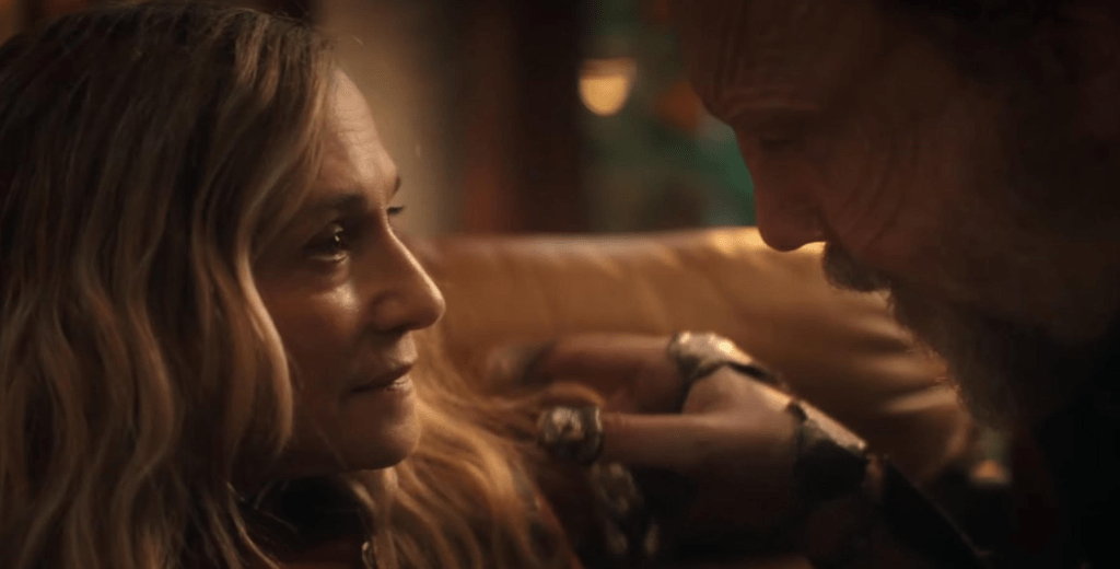 Come, Let’s Away opens with a cool little modern diddy over a romantic sex scene between Caleb (Sandro Rosta) and Tarima (Zoë Steiner) with their feelings for one another having been finally acted upon in a brief cut in Series Acclimation Mil. The scene itself is graphic for Trek which once aimed to be more for everybody with what made it to screen hinting sex was coming or had just happened.
