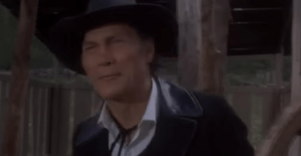 Sam Clayton is captured by Father John and escapes after which he promptly kills the priest and takes over the town which is home to his favorite prostitute Jenny (Sybil Danning) who is Johnny’s mother. I found it very coincidental that Johnny is Sam’s son. Worse, it did nothing to help or hurt the story. It’s not an exciting twist and it’s nothing that takes you out of things. It just created total indifference.
