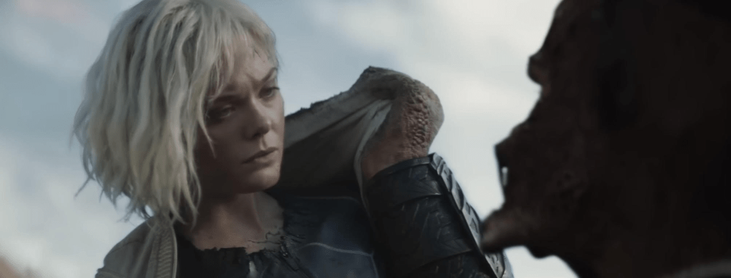 Dek partners with Thia (Elle Fanning), a damaged Weyland-Yutani Corporation android, who states she is there to study the planet, but we all know better. We even get a cute little alien sidekick added to the mix which almost caused be to turn it off and binge a crime show.