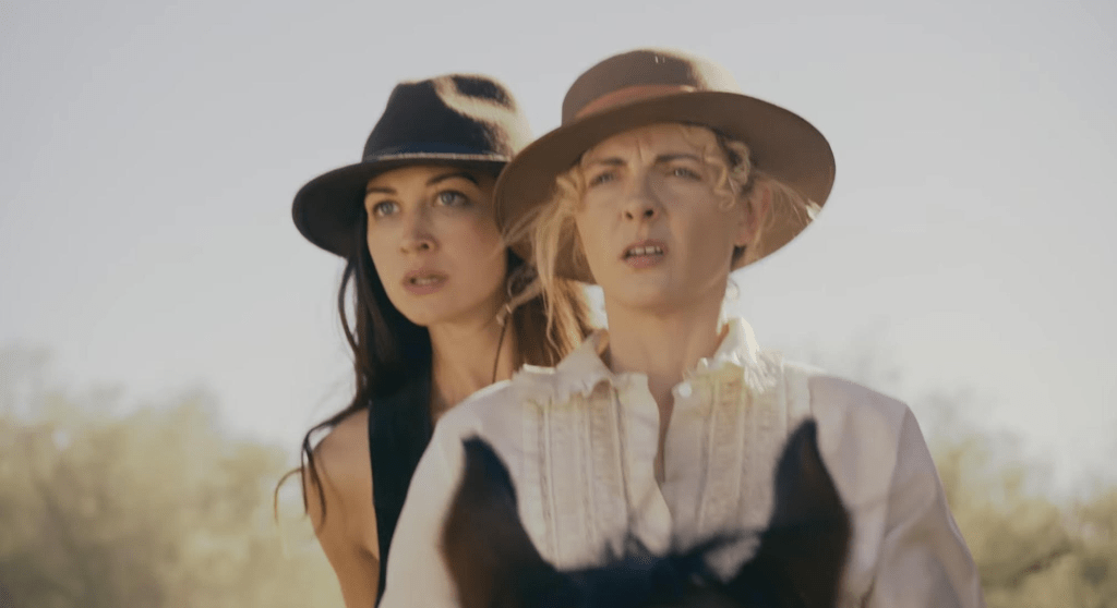 The two sinners of the story are Alice (Chantelle Albers) and Nora (Hannah James) with the implication being the mule (think “ass”) is less-than-couth bounty hunter Eldon (Cam Gigandet) chasing after the villainous Grimes (Cord Newman). When the pair nurse Eldon back to health from a gunshot, they become a trio with the hunt for Grimes being an excuse to tell their story.