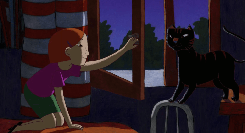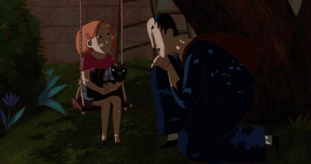 A Cat in Paris largely centers on a cat that leads a double life. At night he accompanies a burglar named Nico that calls him Mr. Cat but during the day resides with a young girl named Zoé who calls him Dino. Zoé’s mother Jeanne works as a police superintendent and while mommy works Zoé is looked after by a nanny named Claudine.