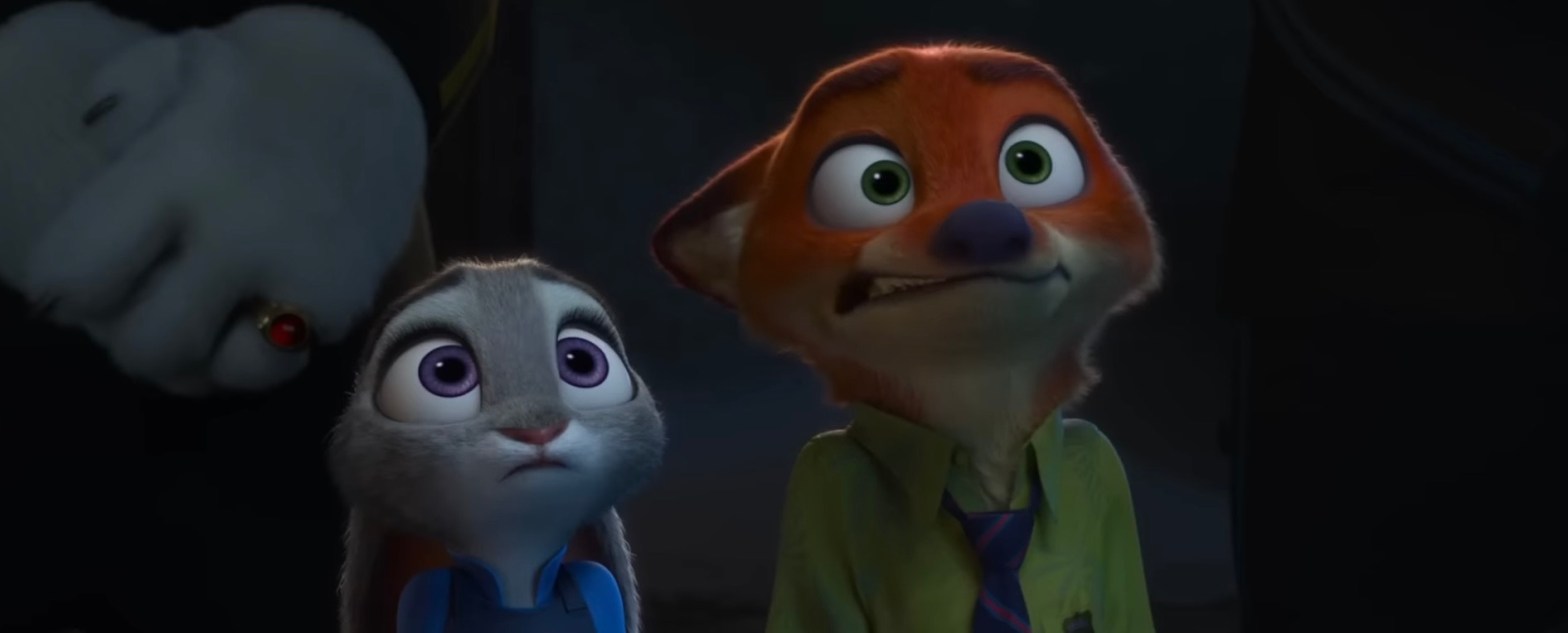 As is usual for those films we have the con artist (a red fox named Nick Wilde) paired with a good cop (a rabbit named Judy Hopps). Judy always does the right thing and finds success down the road with numerous examples littered in the film. Nick lies and cheats and gets to the next step, but it does not go as smoothly as direct kindness and honesty. A lesson? Possibly.