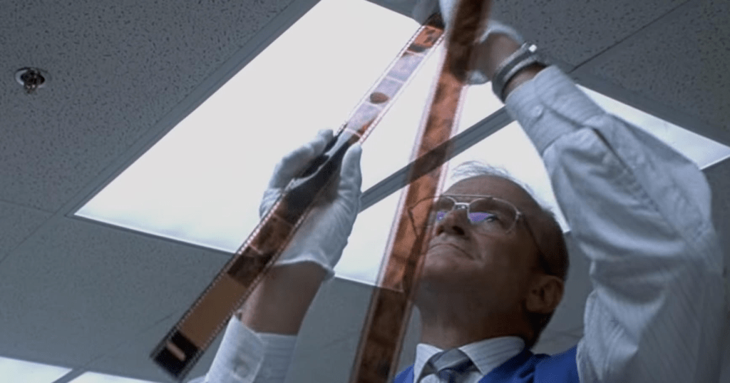 Robin Williams was famously cast against type as lonely SavMart photo tech Seymour ‘Sy’ Parrish who over the years has become attached to the Yorkin Family whom he knows more through their pictures than from a genuine relationship. On the surface Sy is pleasant and kind but that surface hides a man with serious personal issues. After ten or so years of regularly handling the pictures of Yorkins’ pictures he has become obsessed with the idyllic life portrayed in their photographs.