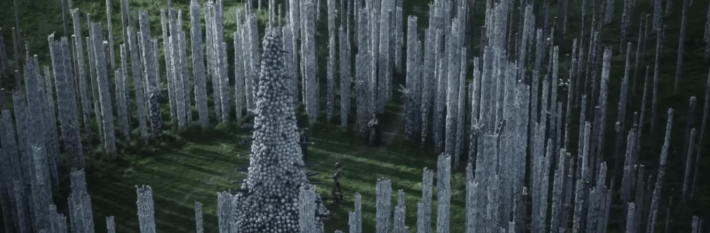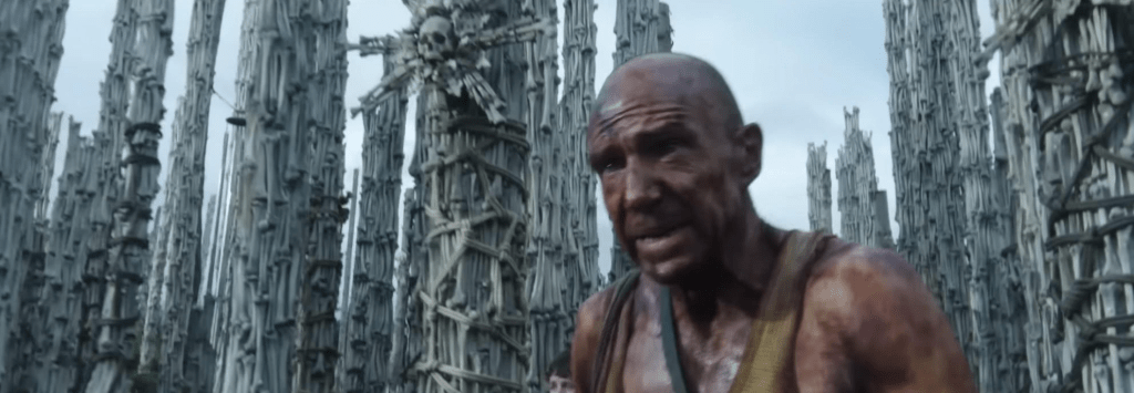 Spike’s mother Isla (Jodie Comer) has been having inexplicable swings between lucidity and insanity. Given the world they live in there is no help for her. Problems begin (or the main plot starts) when father Jamie (Aaron Taylor-Johnson) and son Spike stumble up Dr. Ian Kelson (Ralph Fiennes). Not sure how to feel about Jamie’s assessment of Kelson given the insanity of the lives they ALL lead. Looks like he stumbled across the man in his own jaunt which was with others leading me to so many questions. Were there no other kids Spike’s age this time around?