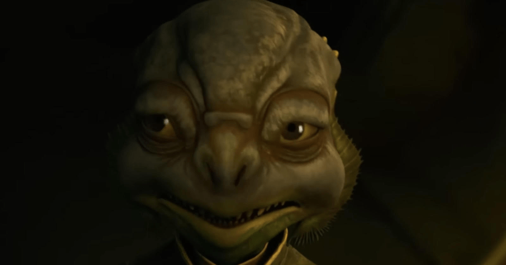 Maul spends his time speaking menacingly with Izara. That is about it. Cannot tell if he implanted any doubts. I chuckled a little bit when they were fighting and Maul stated she was one of the few Jedi to survive. REALLY?! I’m not sure how many Jedi there were but given the number that have shown up over the TV shows, I found his line unintentionally funny. We get at least one a series.