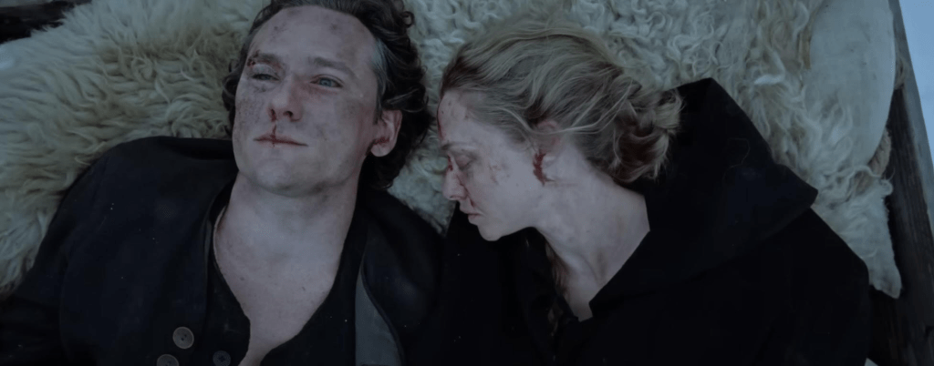One cannot escape how The Testament of Ann Lee connects to sex or rather the aversion to it. I guess you could even call it extreme abstinence. Ann Lee is married as are many other people in her group with others in the group as children maturing and becoming aware of the opposite sex. There are two points where they become a little more graphic than necessary in my opinion. Not against sex scenes when they help tell the story, but it was enough to see a man and woman sneak off or Ann Lee’s husband William (Lewis Pullman) take up with a new woman. We didn’t need to see anybody riding anybody or William’s command of fellatio to the new bride. Just because you can show something doesn’t mean you should.