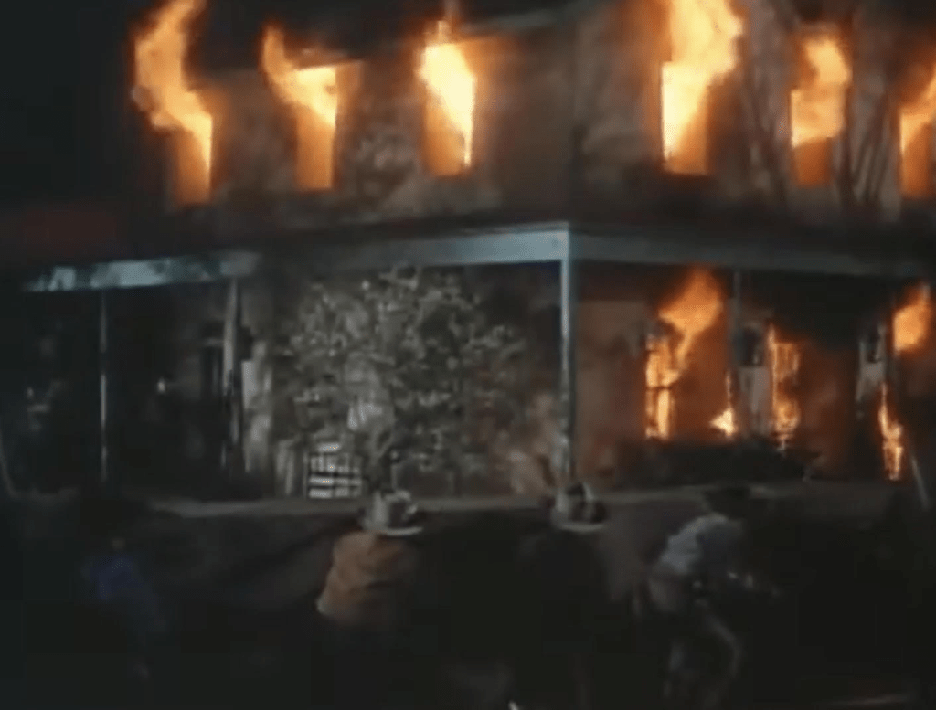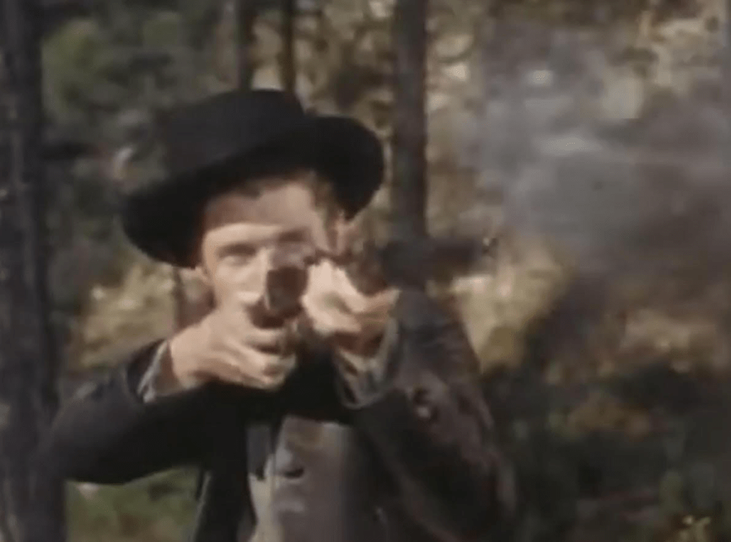 As portrayed, the gun battles are almost gentlemanly exchanges of gunfire. Each side launches volleys and then allows the other to respond in kind like they say occurred in the early days of combat with firearms. Perhaps this aversion to edgy-for-the-time violence owes to the casting of a war hero that kids looked up to.